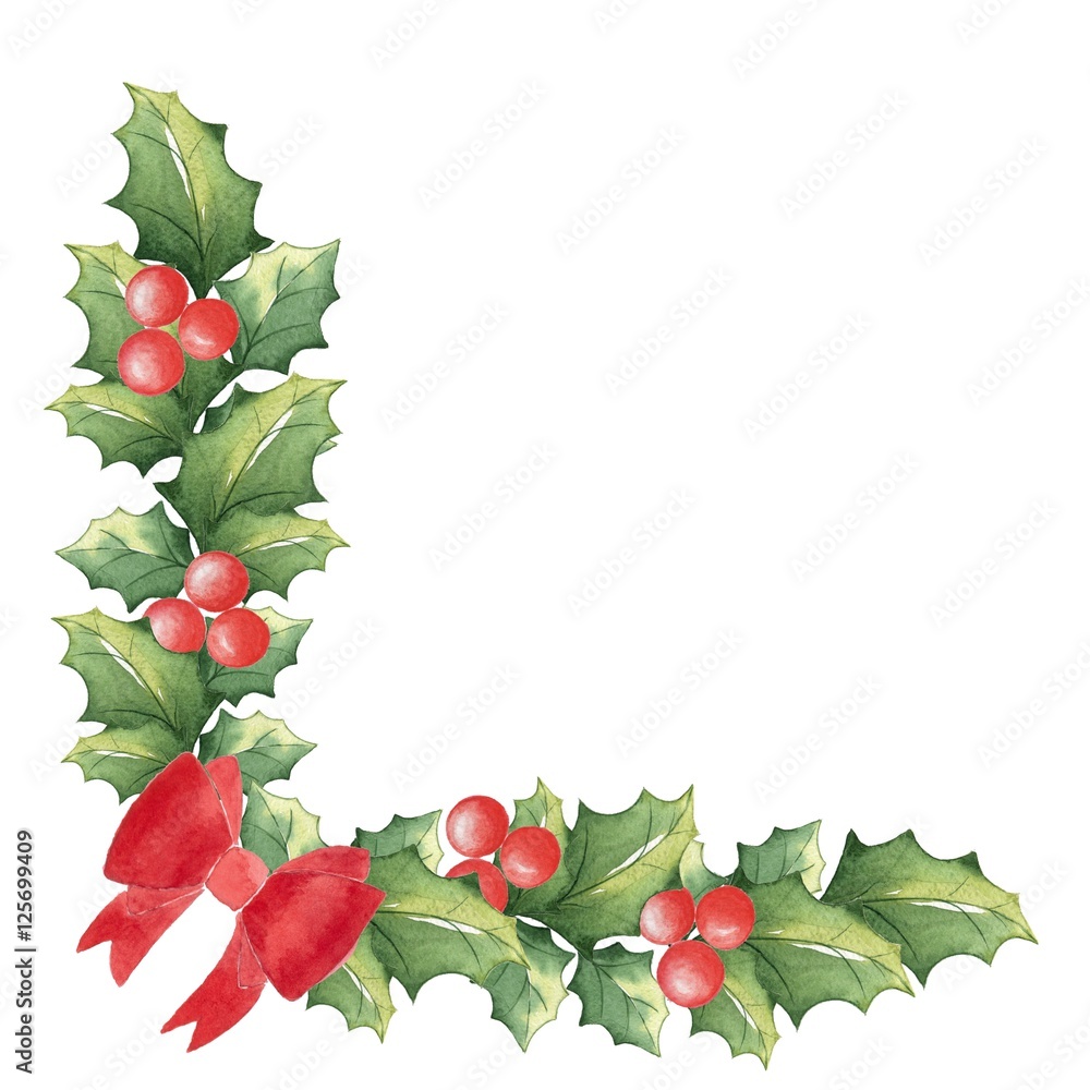 Christmas Mistletoe With Bow Watercolor Background Handmade Drawing For Holiday Design Of Cards Invitations And Posters Stock Illustration Adobe Stock